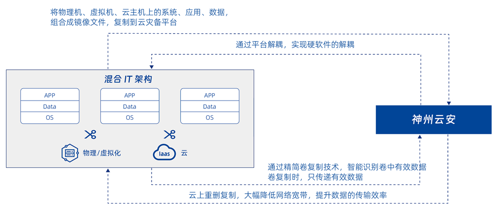 集备份、、容灾功能为一体的云灾备平台产品,,,将需要灾备保护的操作系统、、、应用、、数据打包成一个云镜像文件,,,灵活快速的复制到云灾备平台,,,为用户的混合 IT 环境提供统一的灾备保护。。。。