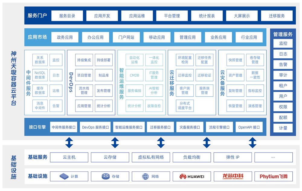 全栈自主可控的企业级容器云服务平台,,开箱即用的企业级多云管理、、、业务迁移上云、、、、云上开发测试、、、运维管理及容灾备份功能特性,,,,模块化按需部署,,降低建设成本,,,,随业务需求灵活扩展。。。。